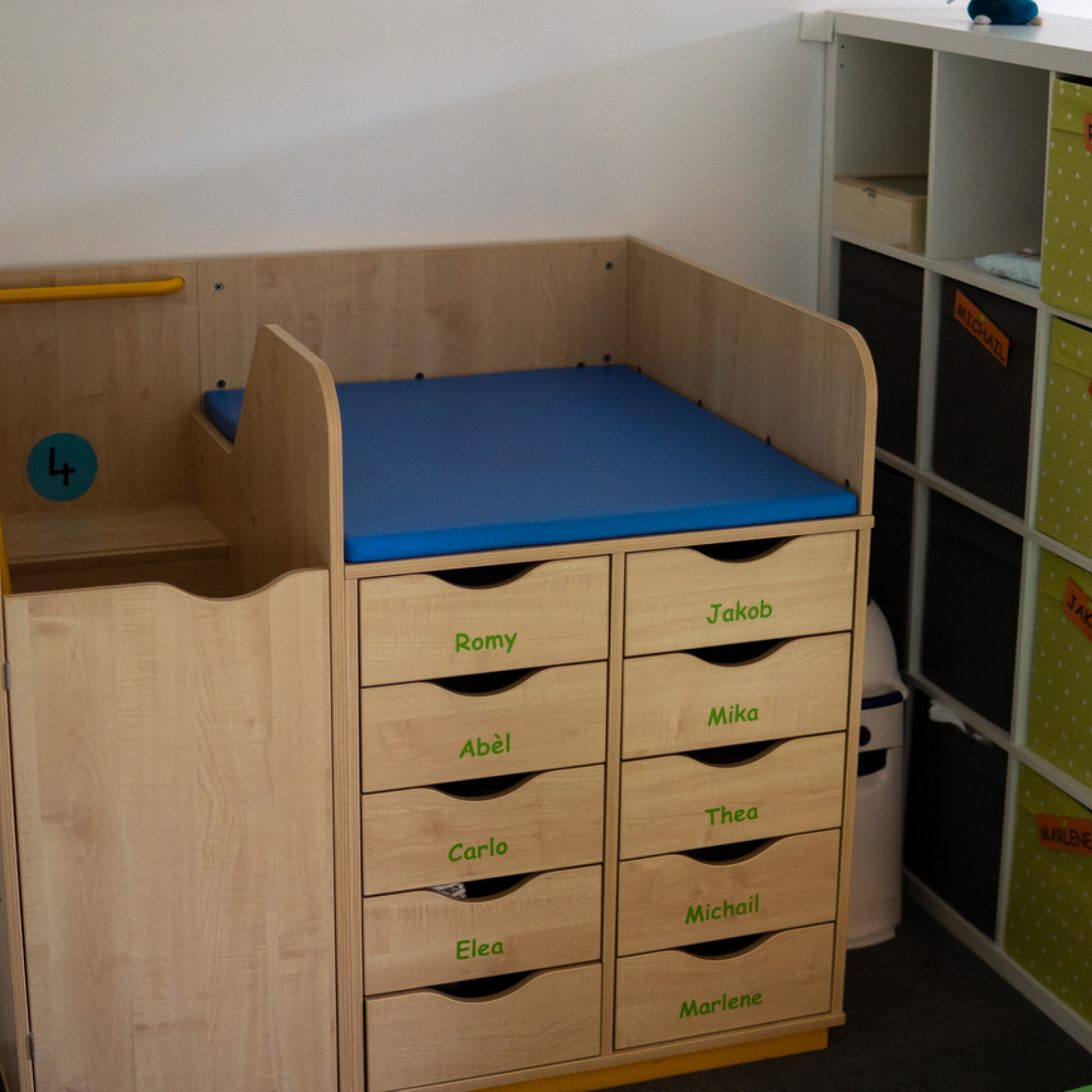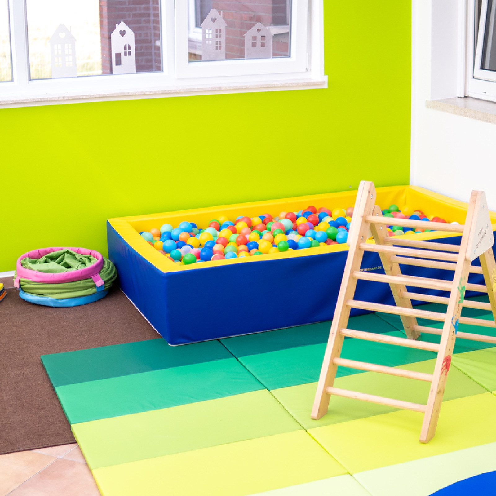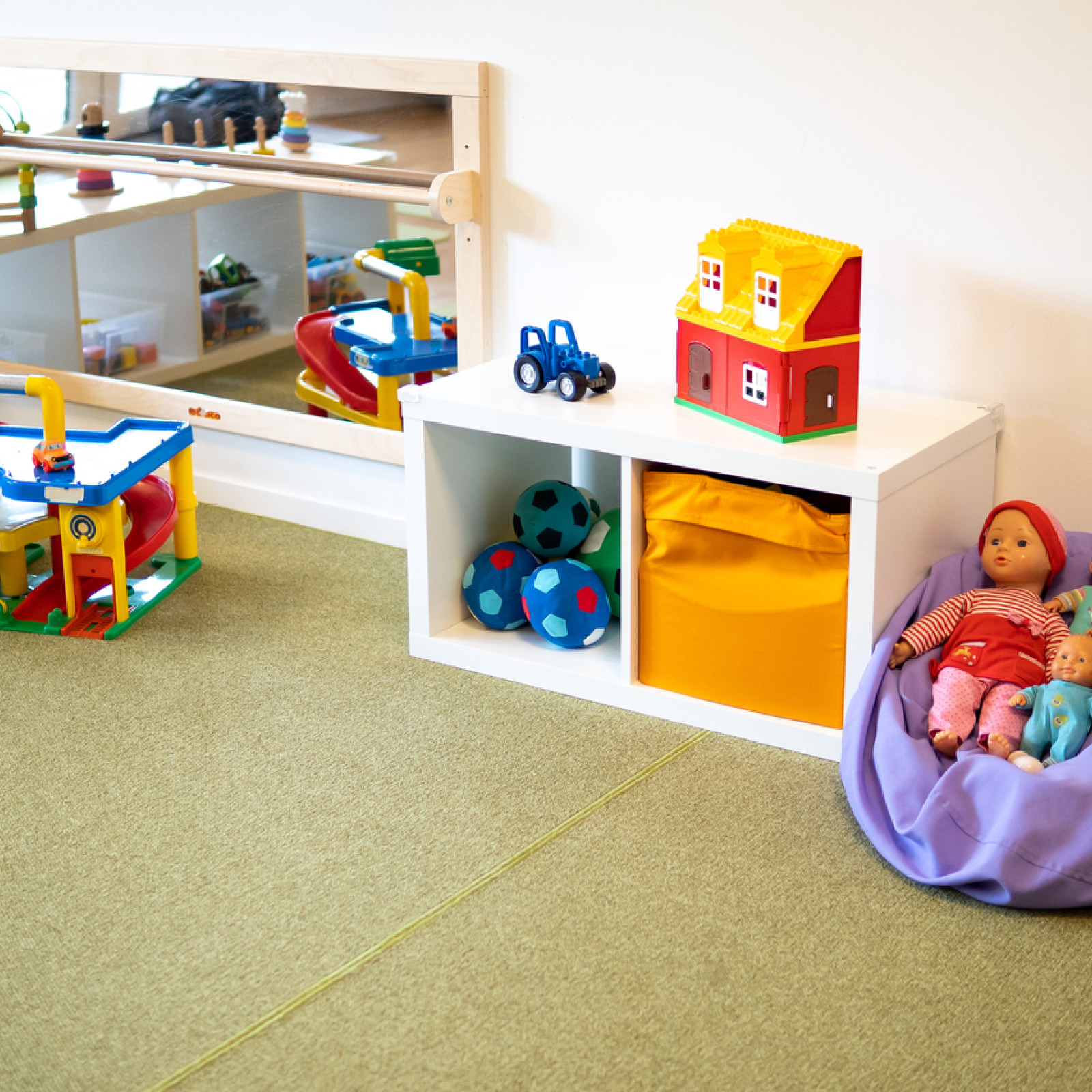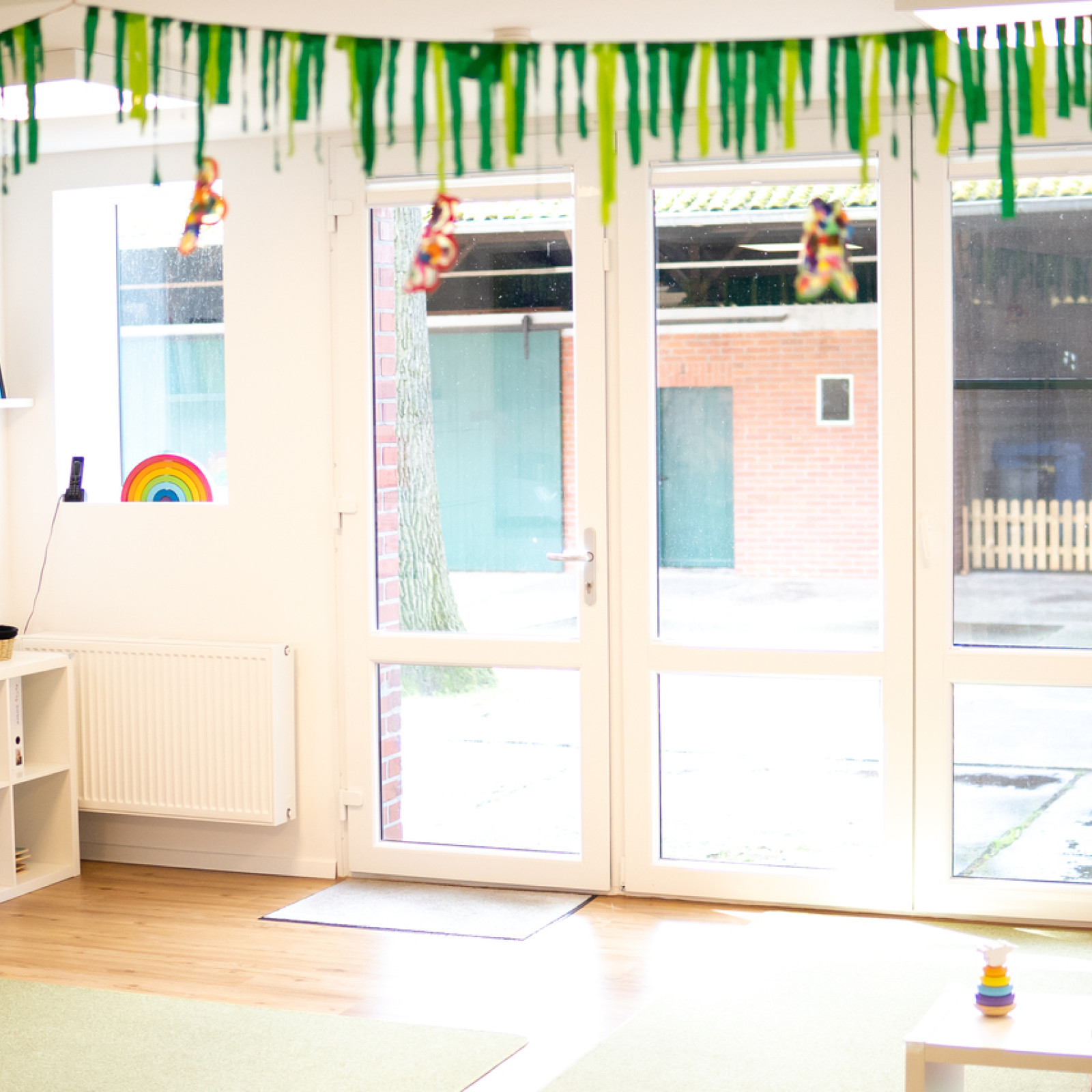 Im Schlafraum hat jedes Kind sein eigenes Bett, wo es sich von den Eindrücken des Tages erholen kann. Das große Spielzimmer bietet viele Möglichkeiten zum Spielen, Toben und Erkunden. Ein weiterer Raum wird für verschiedene Angebote genutzt. Im kindgerechtem Essbereich wird mit den Kindern gemeinsam gekocht und gegessen.